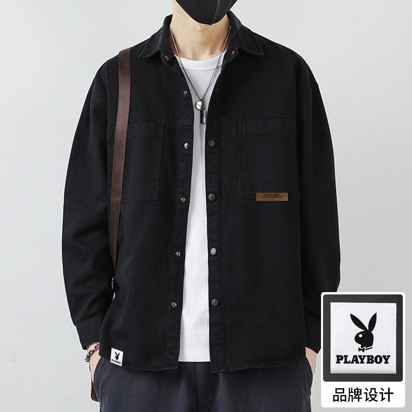 - 纯色牛仔衬衫男
