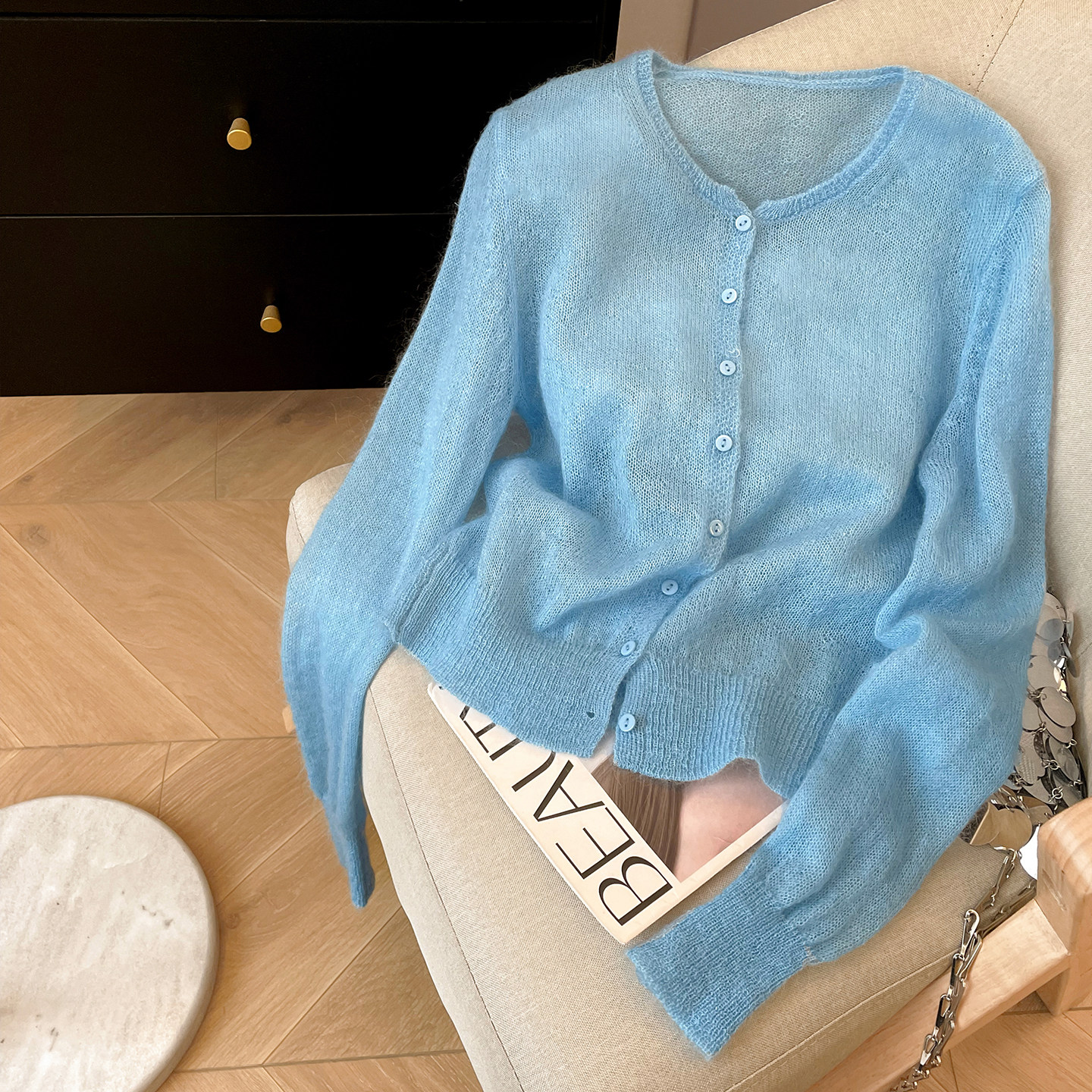 小C家 马海毛毛衣女款2026新款春薄款慵懒高级感羊毛圆领针织开衫