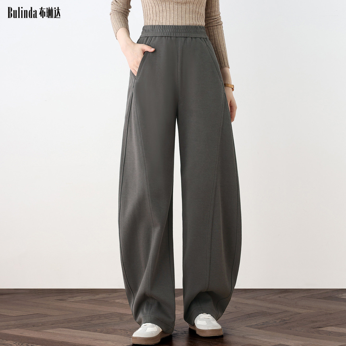 布琳达阔腿香蕉裤宽松加长镰刀裤女秋冬加厚绵羊毛弯刀裤运动卫裤