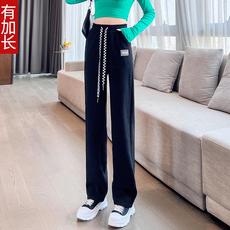 2026秋冬运动裤女新款韩版宽松显瘦百搭休闲高腰直筒阔腿加长裤子