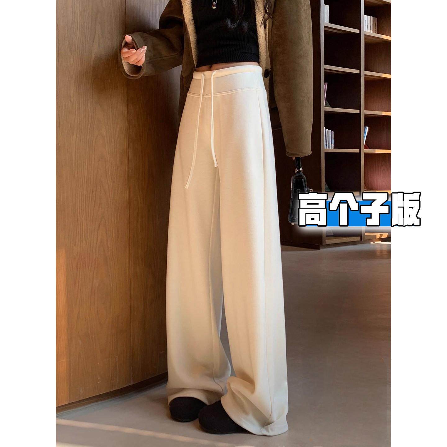高个子超长米白色糯米阔腿裤女秋冬加绒加厚垂感加长拖地运动卫裤