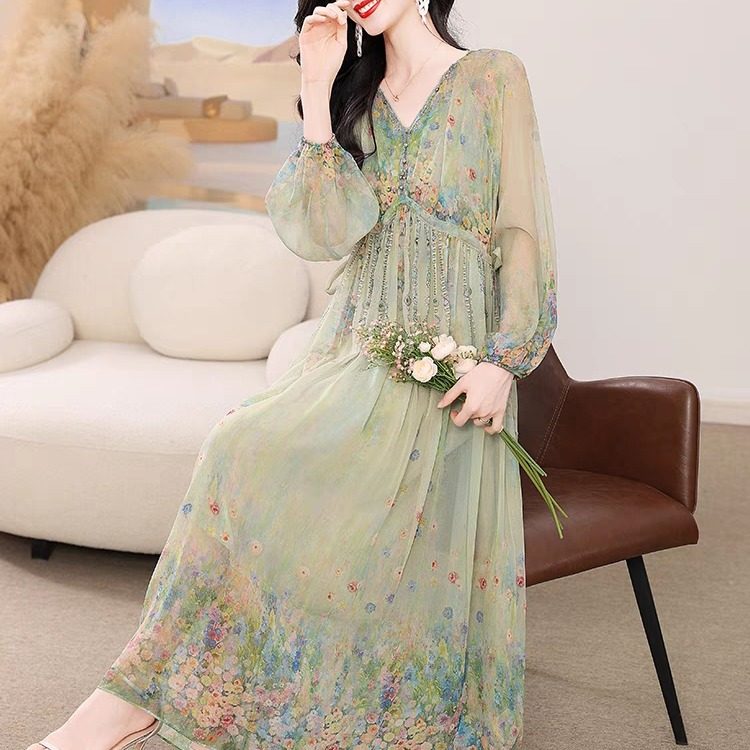 - 真丝 桑蚕丝 连衣裙 长裙
