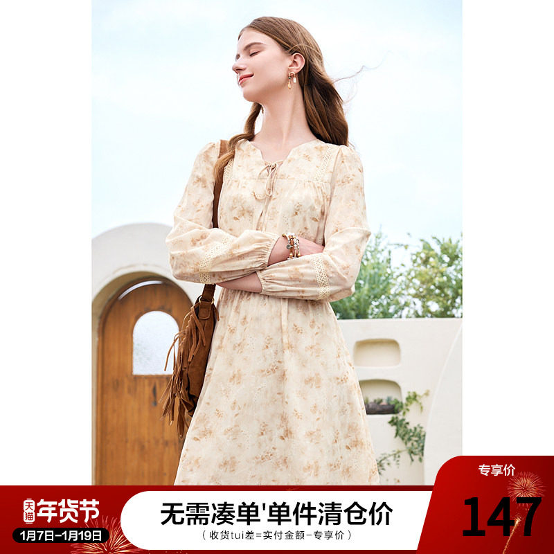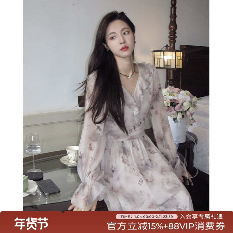 - 碎花连衣裙长袖 显瘦
