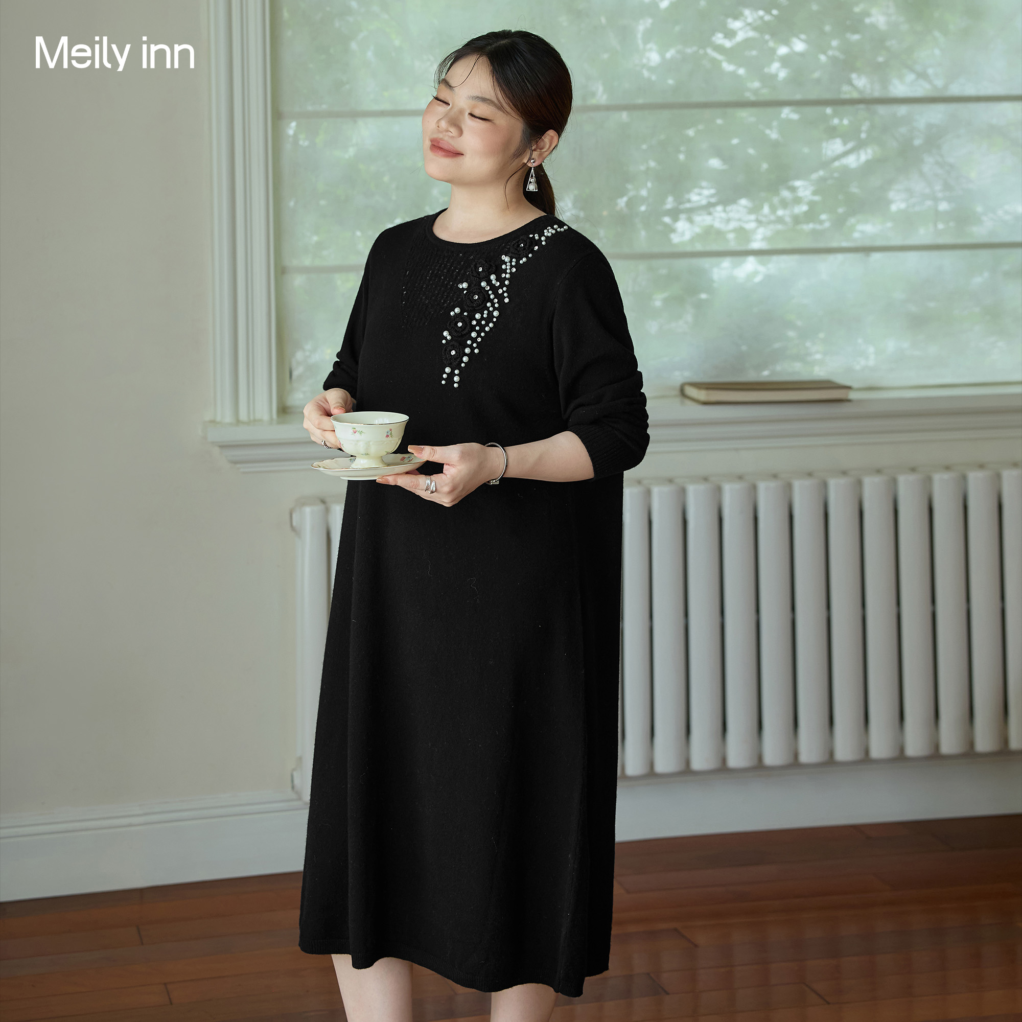 美丽客栈高端大码女装连衣裙2025秋冬新款胖mm巨显瘦针织连衣裙女
