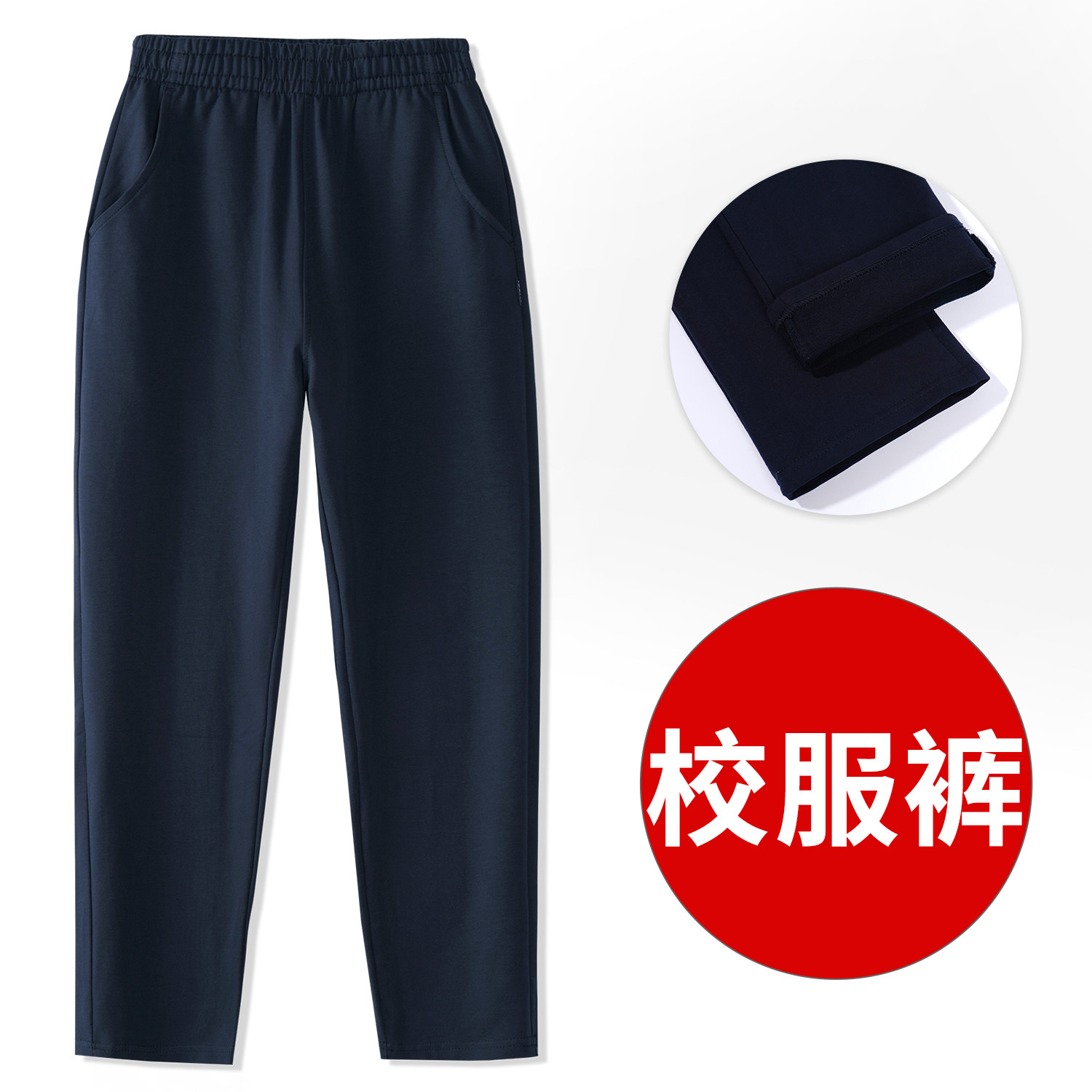 儿童藏青色运动裤小学生春秋中大男女童校服裤子深蓝纯棉长裤演出