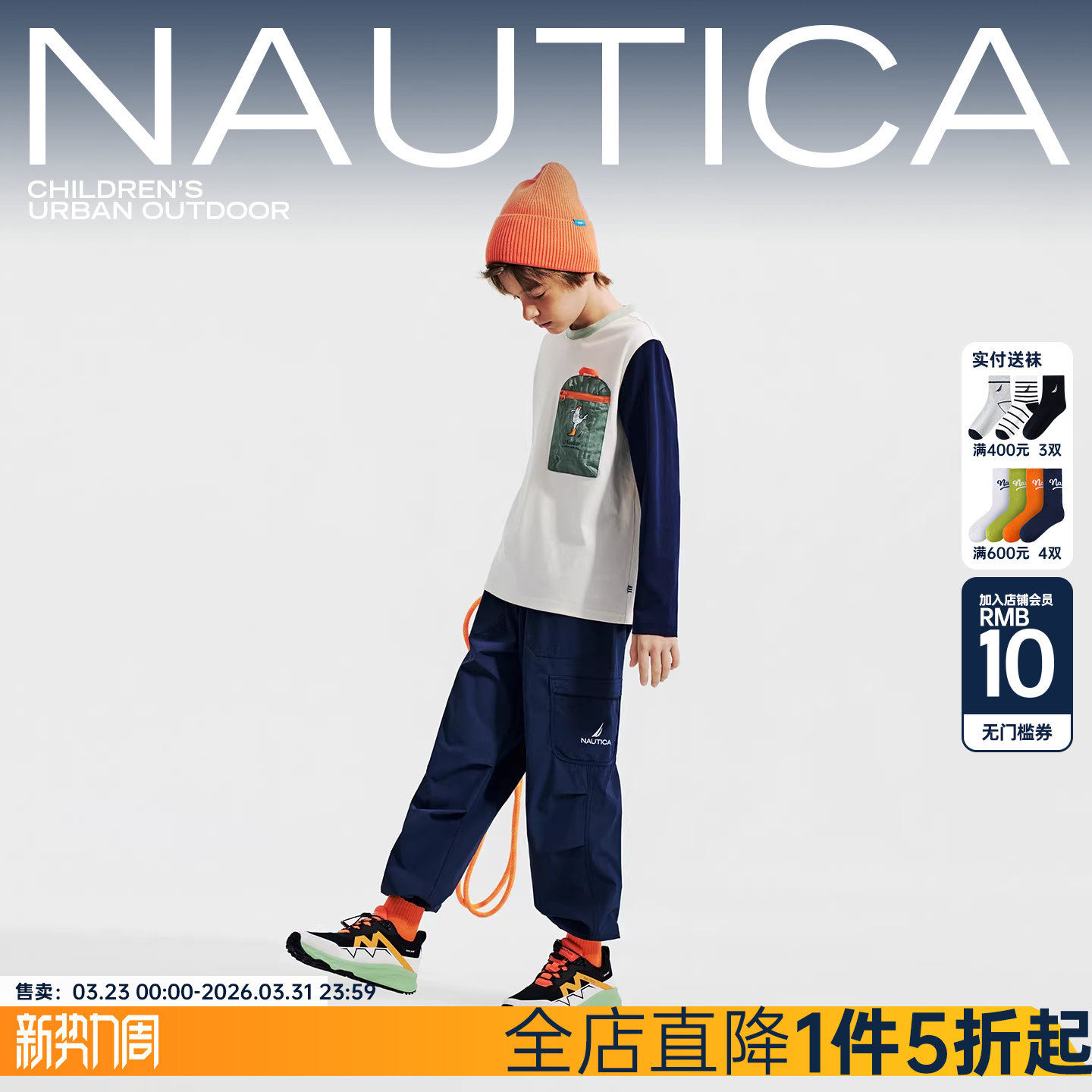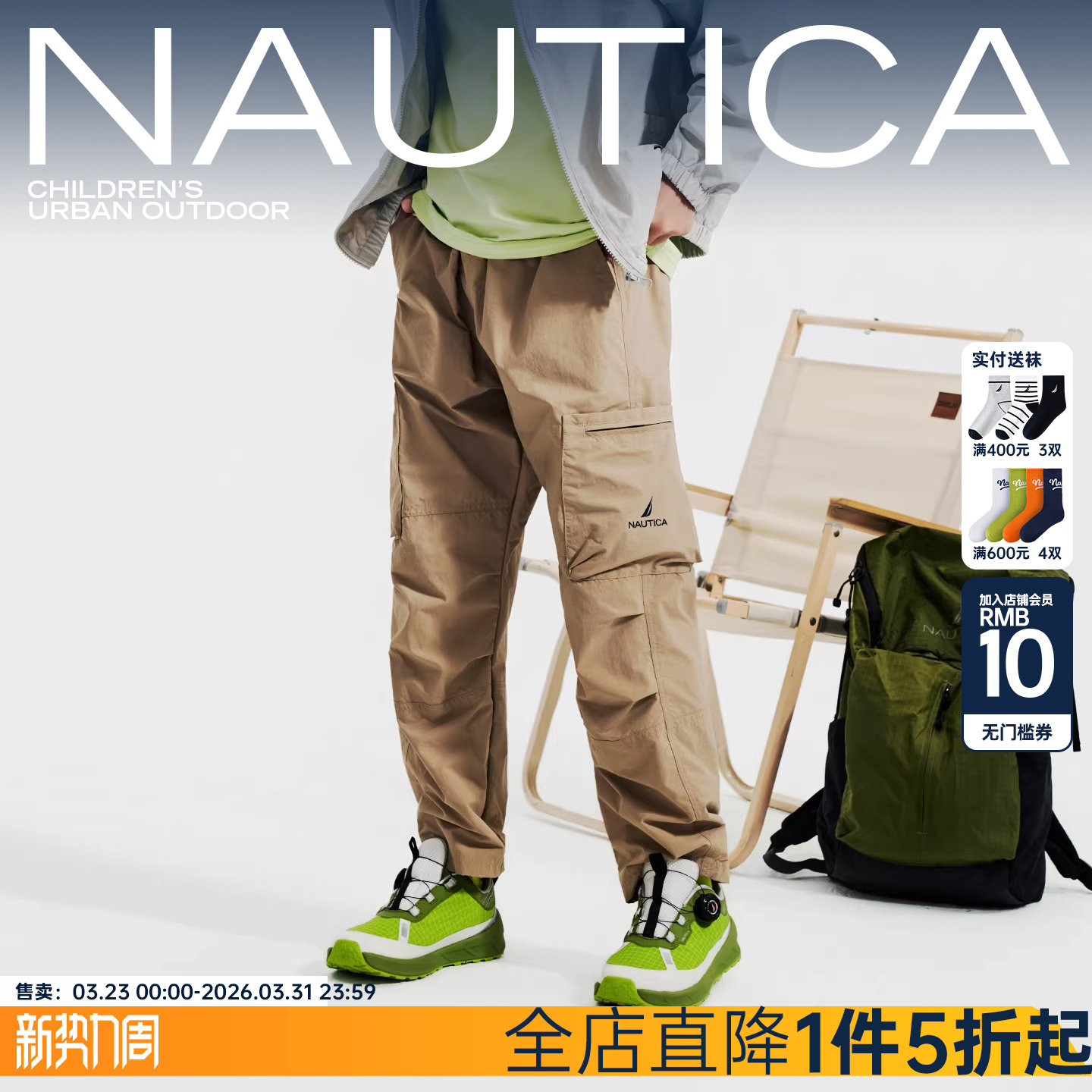 NAUTICA/诺帝卡童装男童女童长裤春秋季中大儿童户外裤子薄款工装