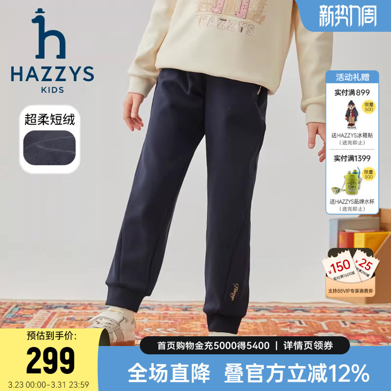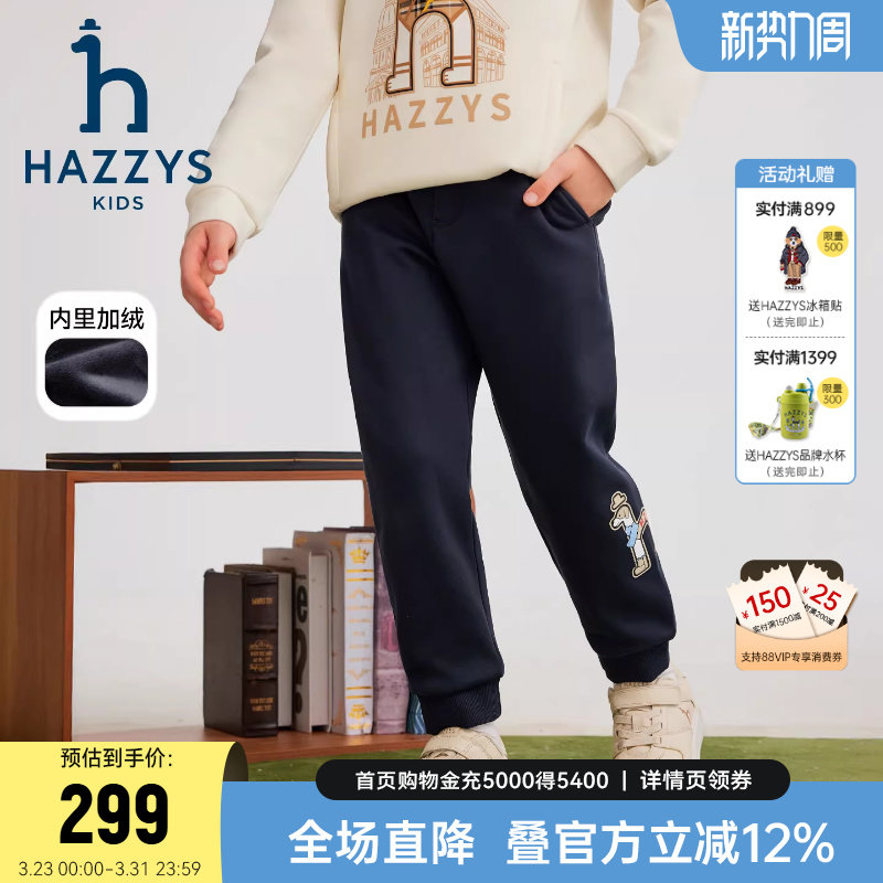 hazzys哈吉斯童装男女童裤子2025冬新中大童复合短绒舒适保暖长裤