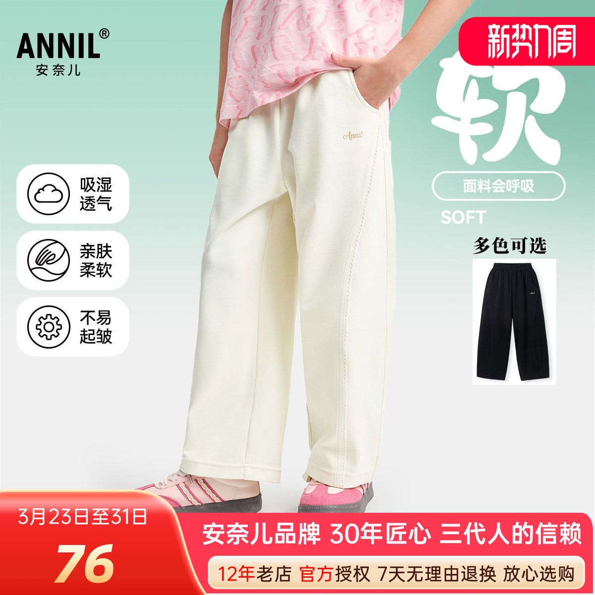 安奈儿中大男女童宽松直筒薄长裤2025春夏款运动单裤亲肤潮酷百搭