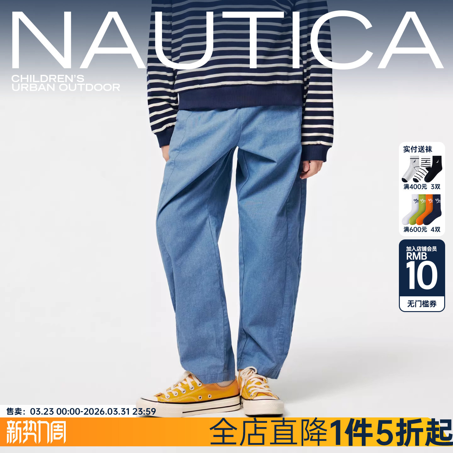 【全棉】NAUTICA童装 男女童长裤春秋季中大儿童裤子牛仔裤直筒裤