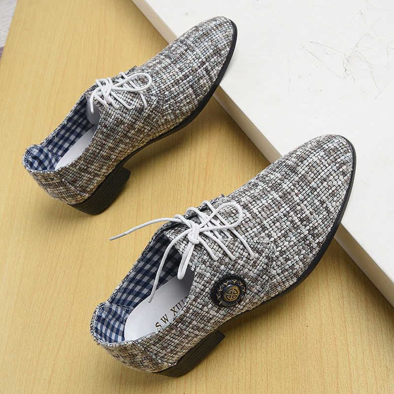 小皮鞋男韩版潮流休闲百搭英伦青年个性尖头帆布发型师鞋子春夏季