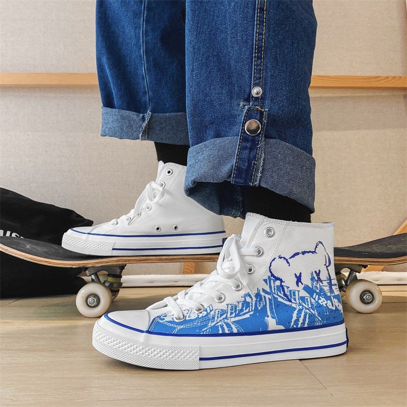男款潮流2025新款帆布鞋高帮板鞋百搭个性滑板鞋涂鸦鞋休闲韩版鞋