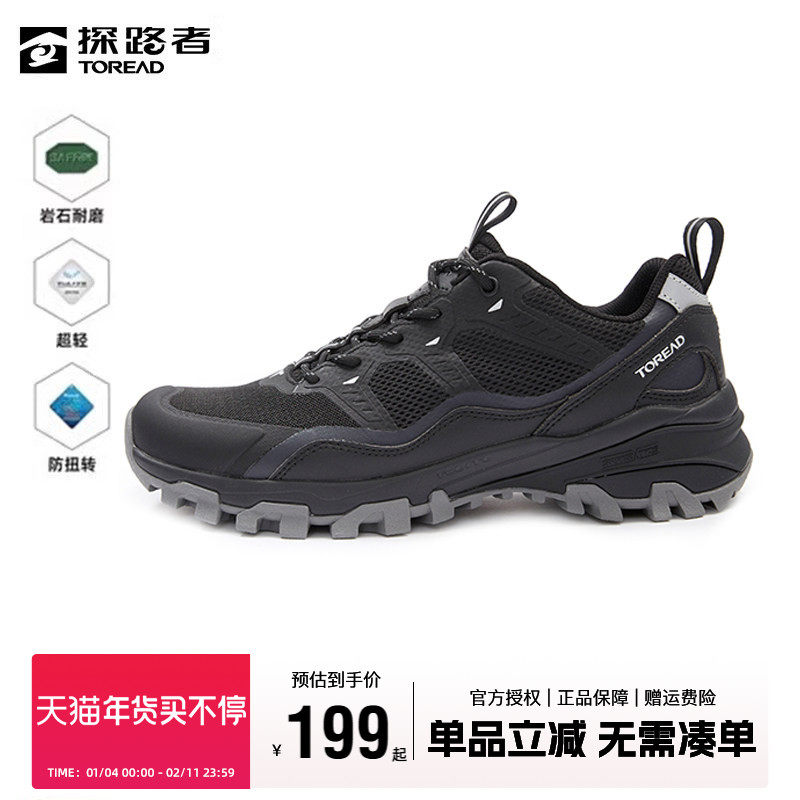 悍途户外夏季登山鞋男防滑减震网面透气轻便越野鞋黑色爬山徒步鞋