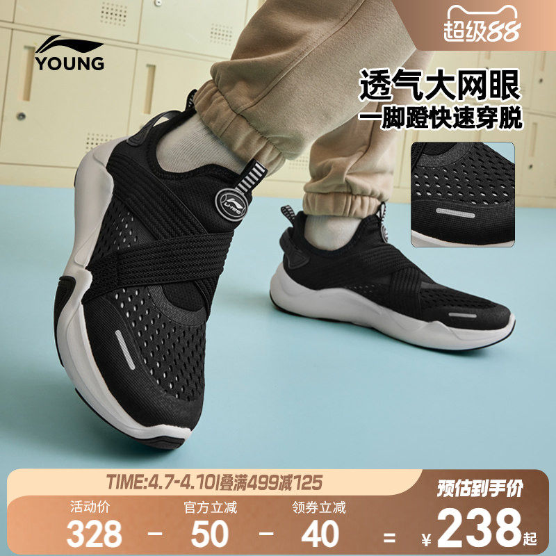 李宁儿童一脚蹬运动鞋2026新款网面透气网鞋男童鞋女青少年跑步鞋