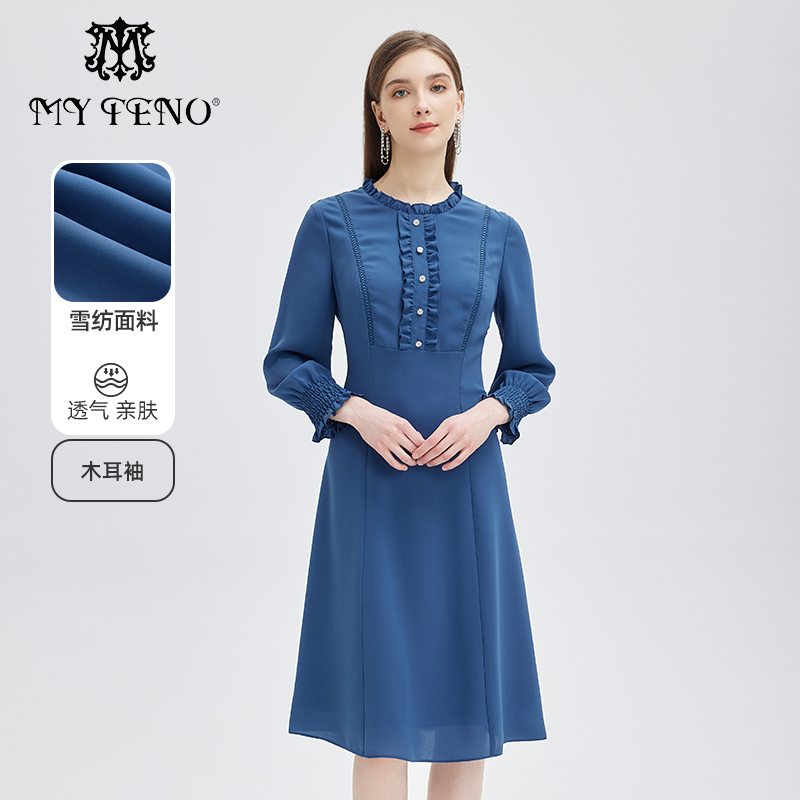 - 春秋连衣裙长袖复古
