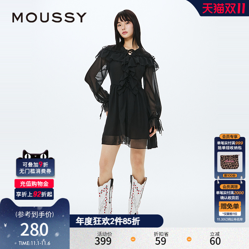 MOUSSY 春季新品法式浪漫优雅短款雪纺连衣裙女028HSZ30-0571