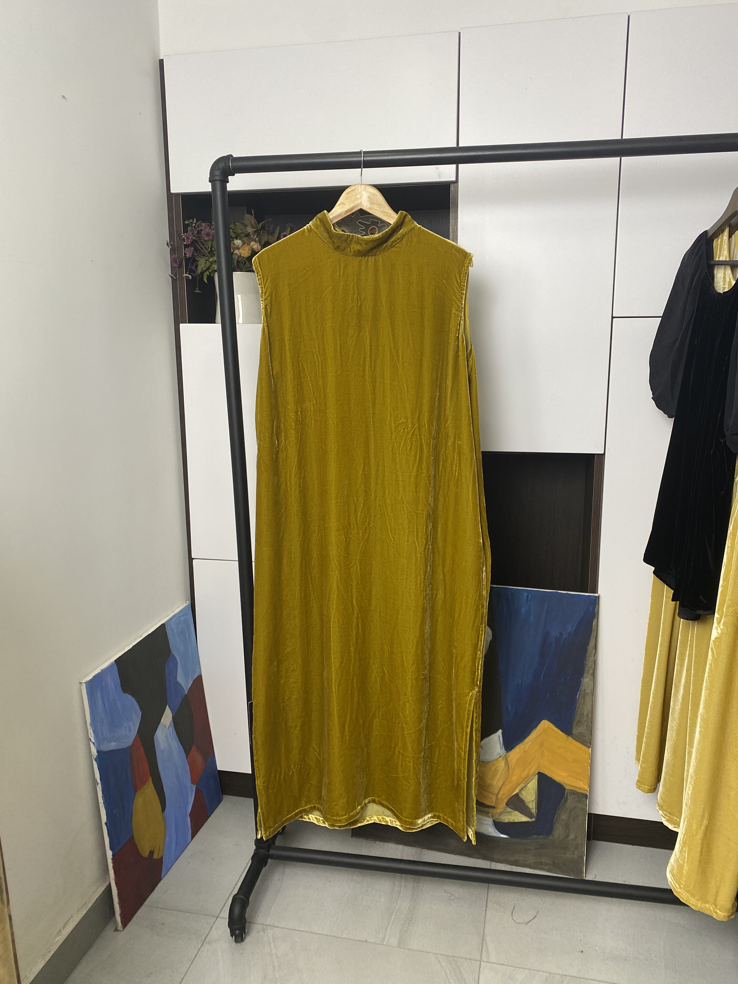 欧洲站南油欧货时尚气质优雅V领飞袖真丝丝绒收腰显瘦连衣裙长裙