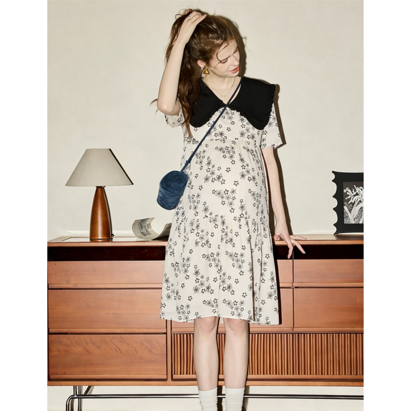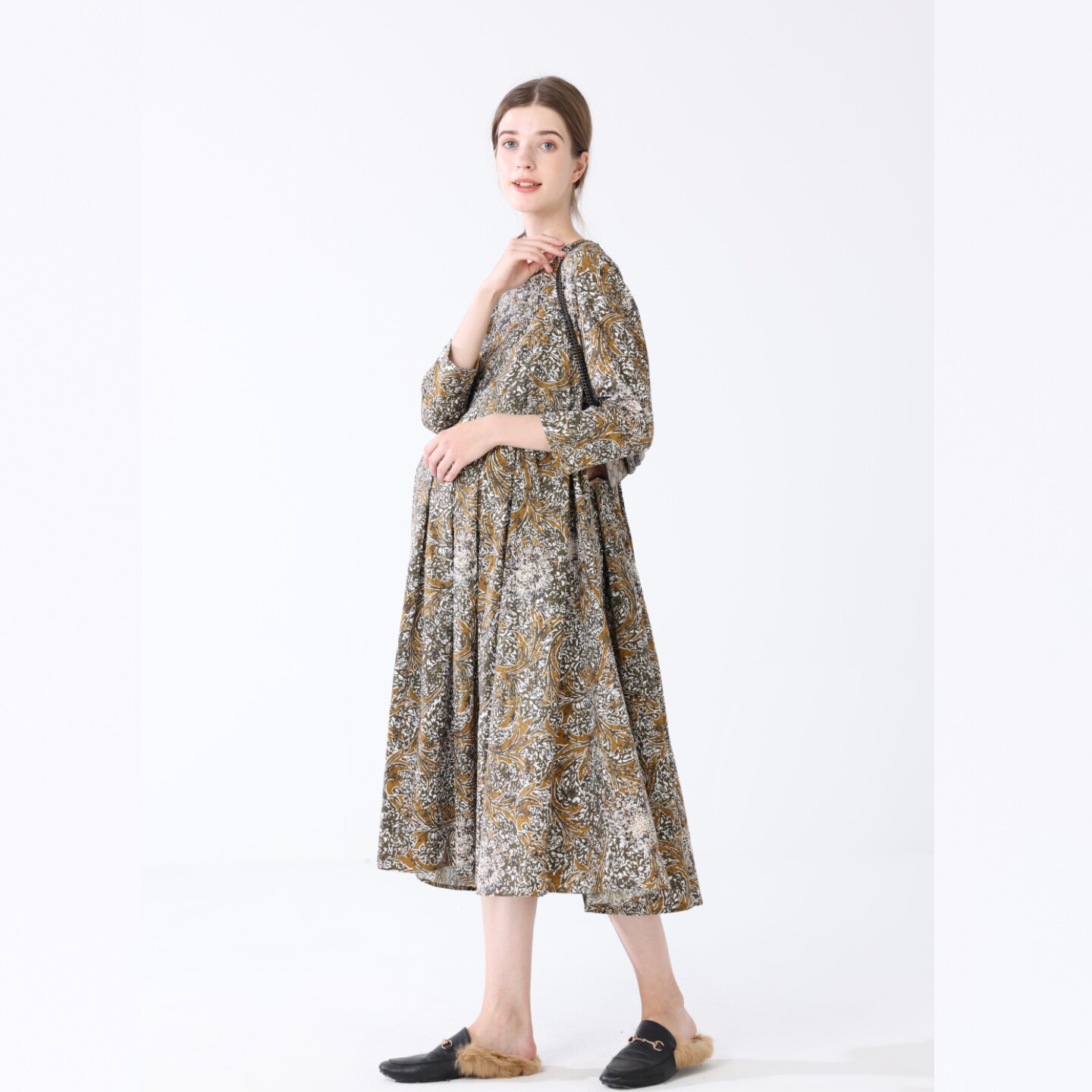 - 印花中长款连衣裙