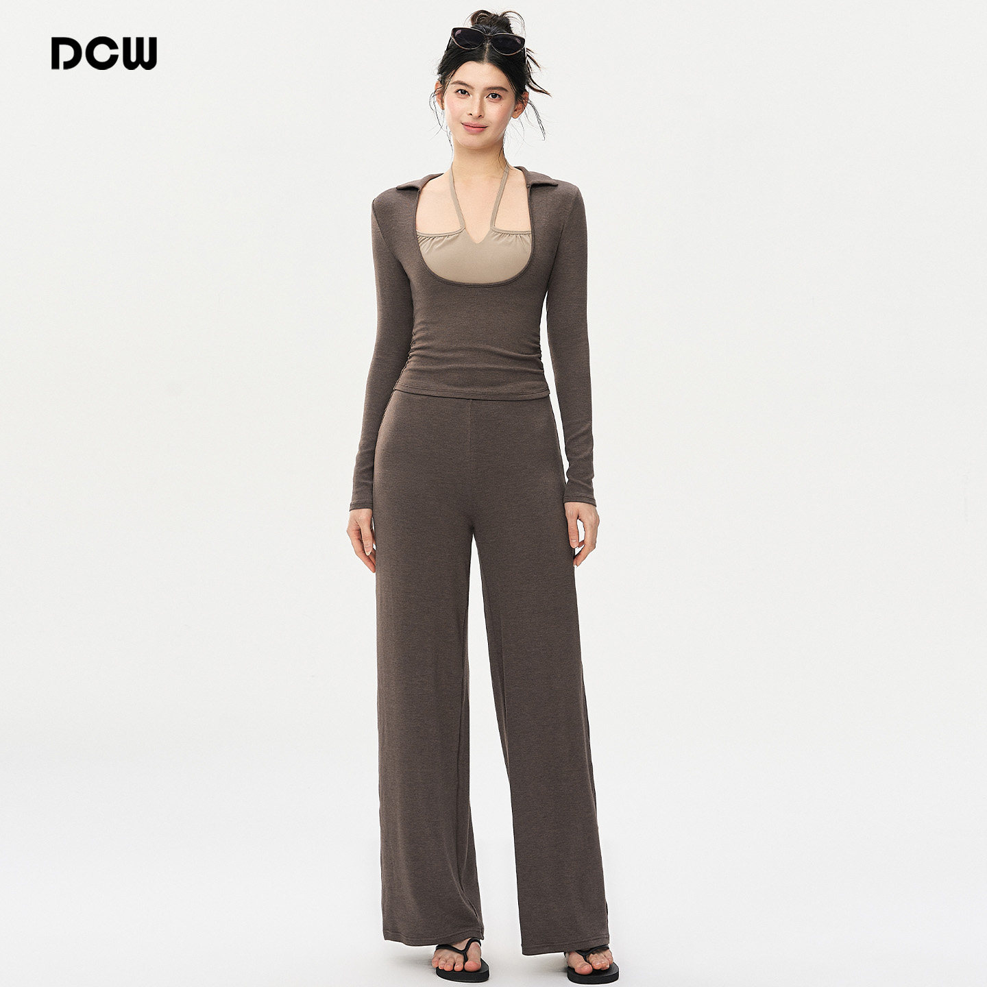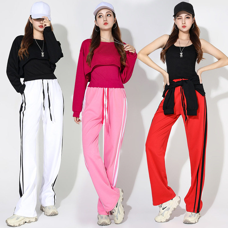 DCW运动套装女带胸垫吊带背心宽松健身长袖阔腿瑜伽裤休闲三件套