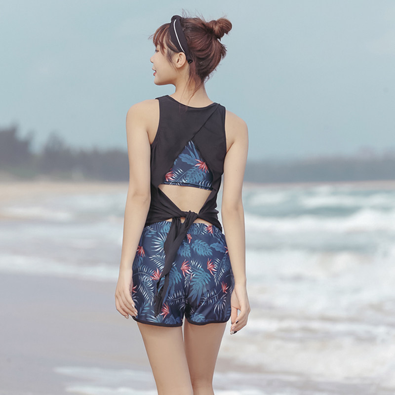 青春运动休闲风泳衣女分体三件套时尚保守遮肚泡温泉海边度假泳装