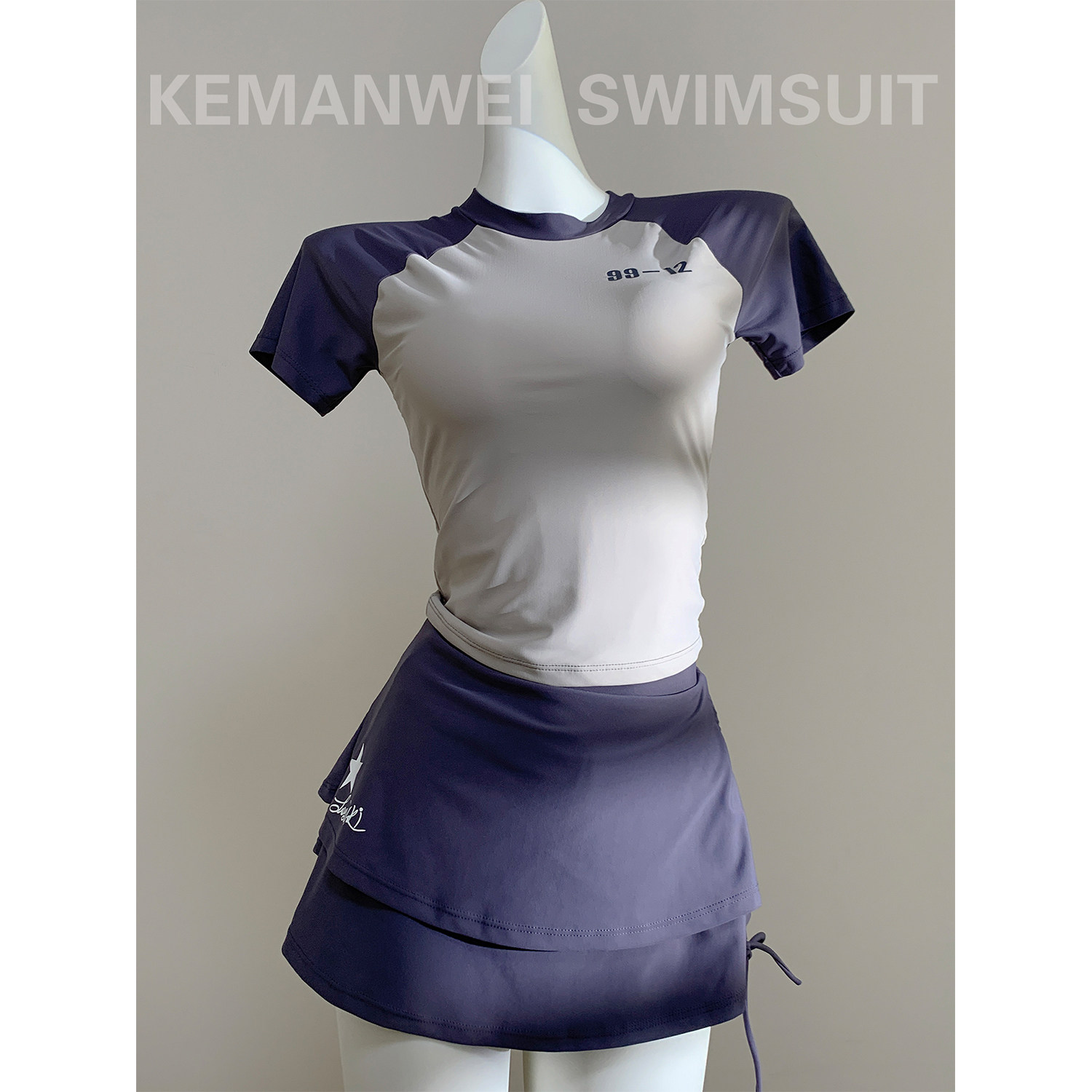 【蓝星灰】休闲运动泳衣女分体三件套装修身显瘦可爱少女2025新款