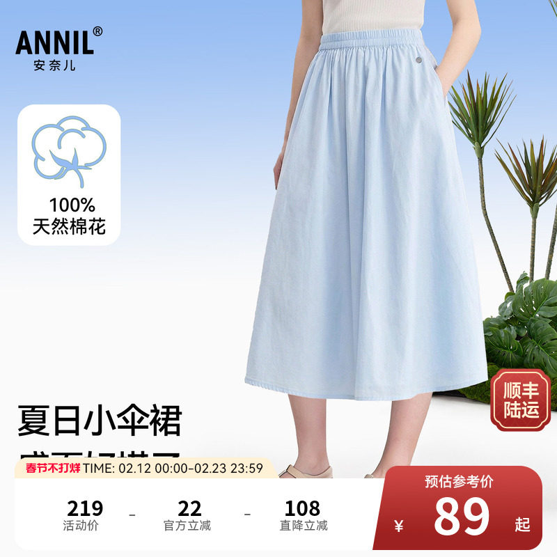 安奈儿童装女童半身裙2026夏新款纯棉纯色休闲时尚A字中长裙子