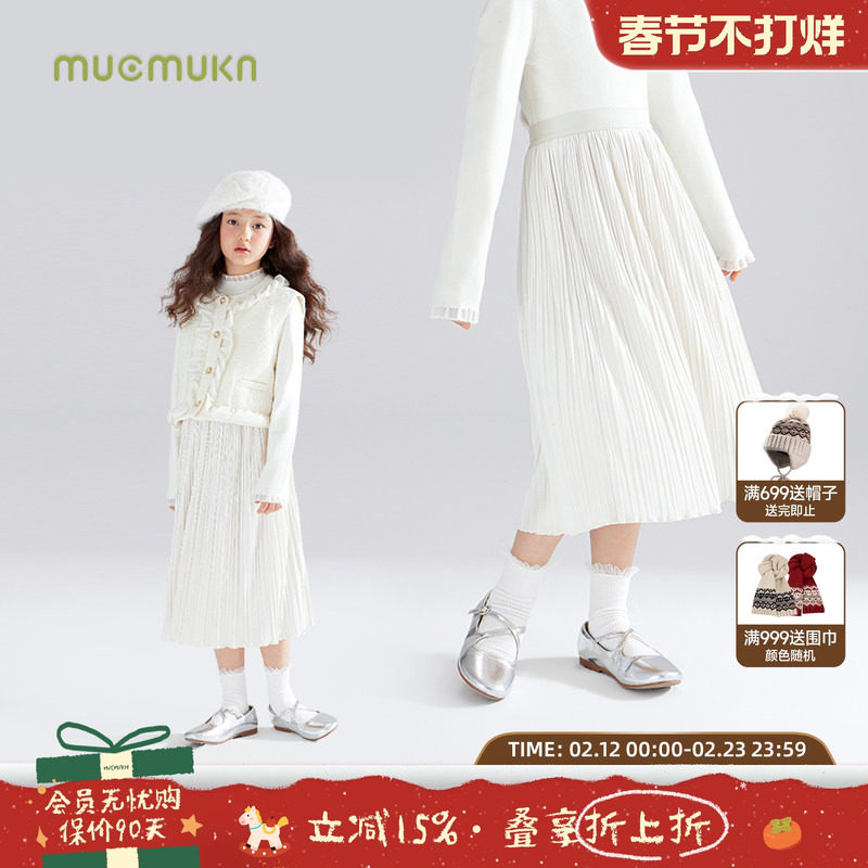 MUCMUKN【北欧日记】灯芯绒花苞3M绗棉长裙保暖时尚裙子女童冬新