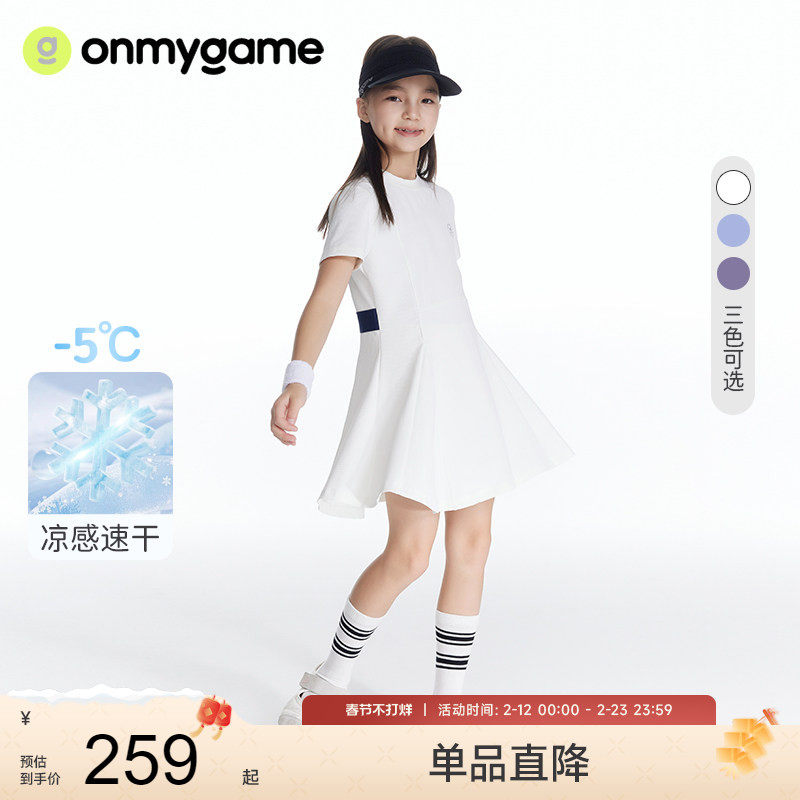 onmygame【小白裙】女童连衣裙快干网球裙儿童凉感长裙网球服春装