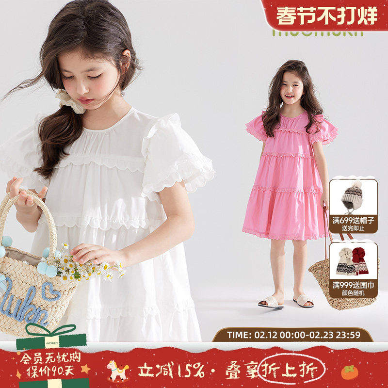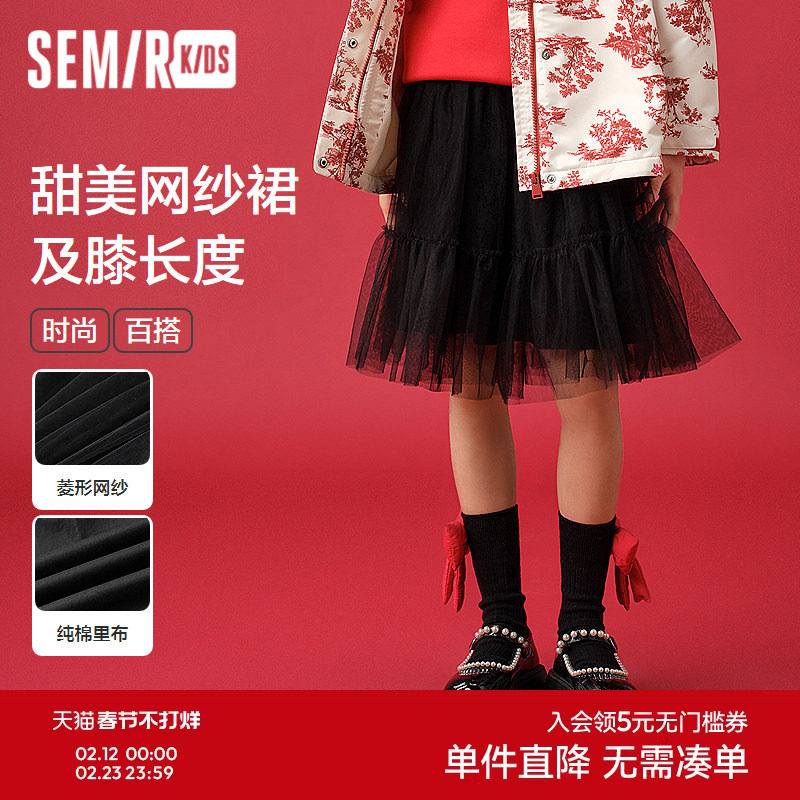森马儿童裙子2025春季新款纯色百搭甜美网纱裙女童中长裙时尚童装