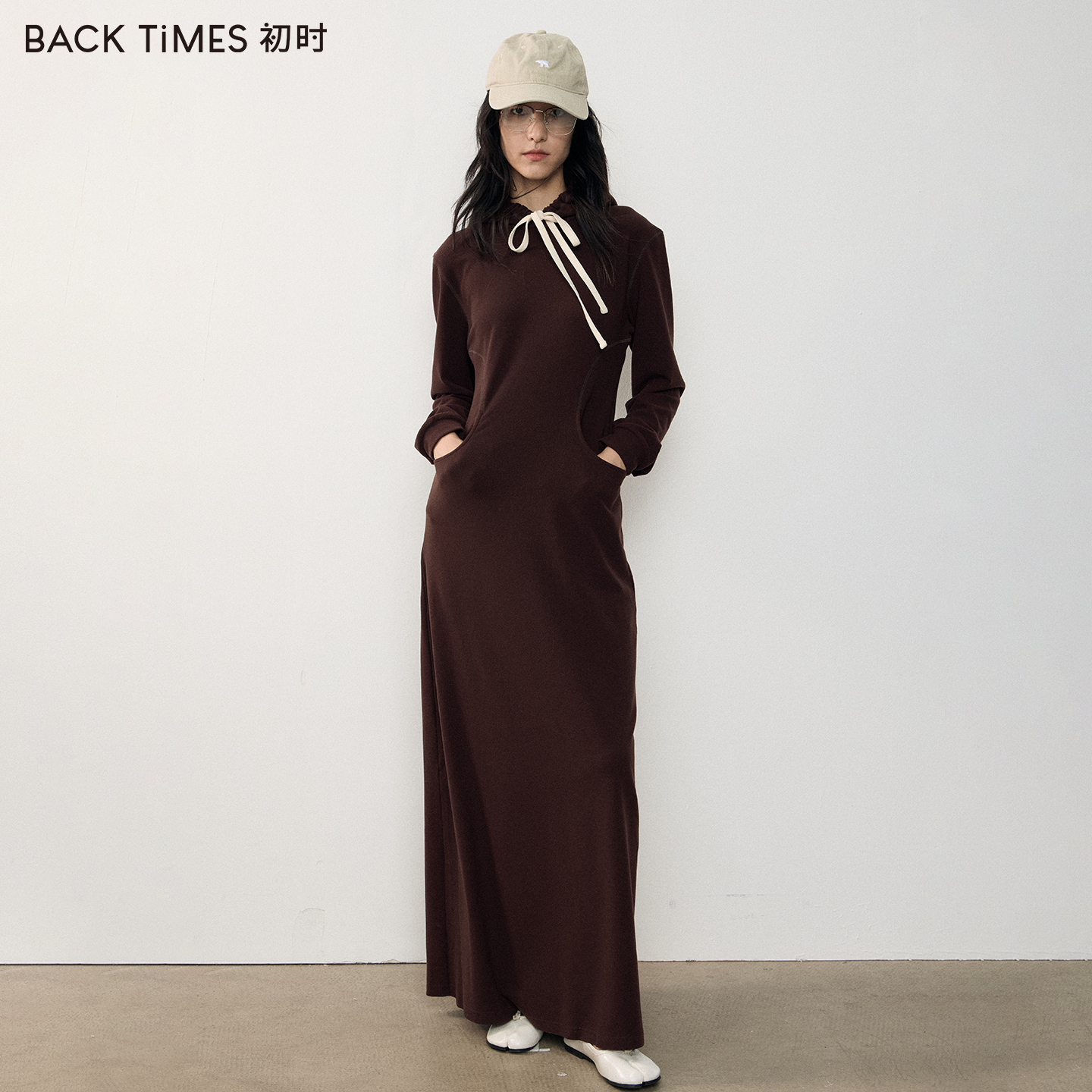BACK TIMES初时秋季新品连衣裙2025连帽针织卫衣时尚百搭连衣裙