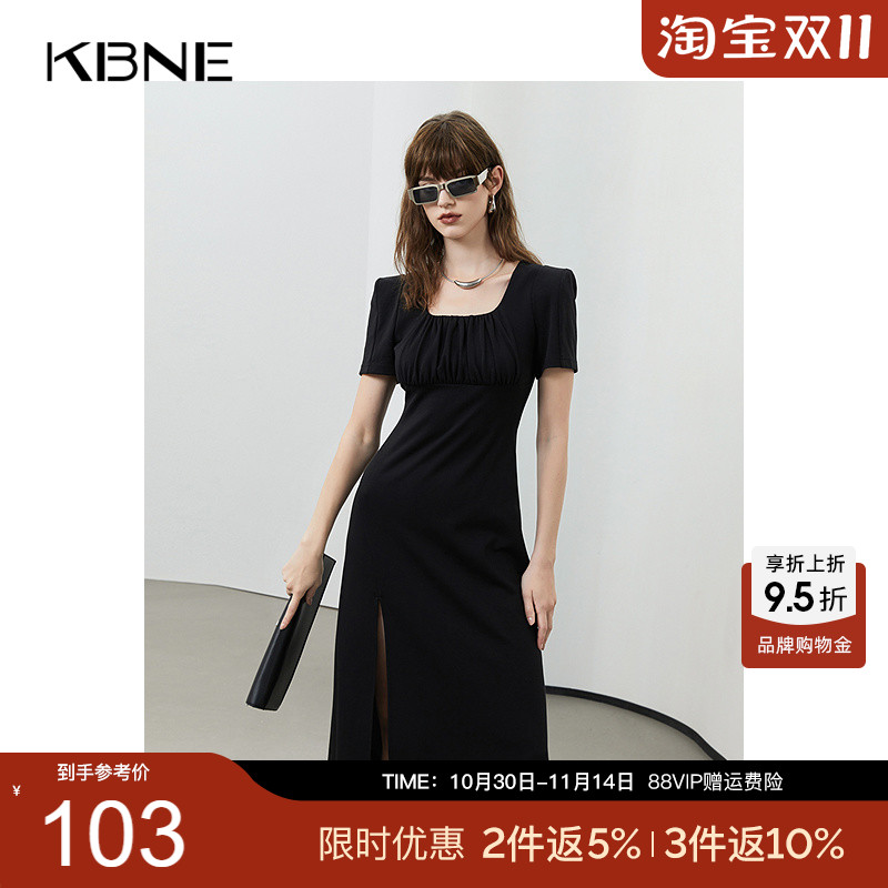 KBNE黑色短袖字裙夏季新品连衣裙正式场合轻奢气质高级感中长裙