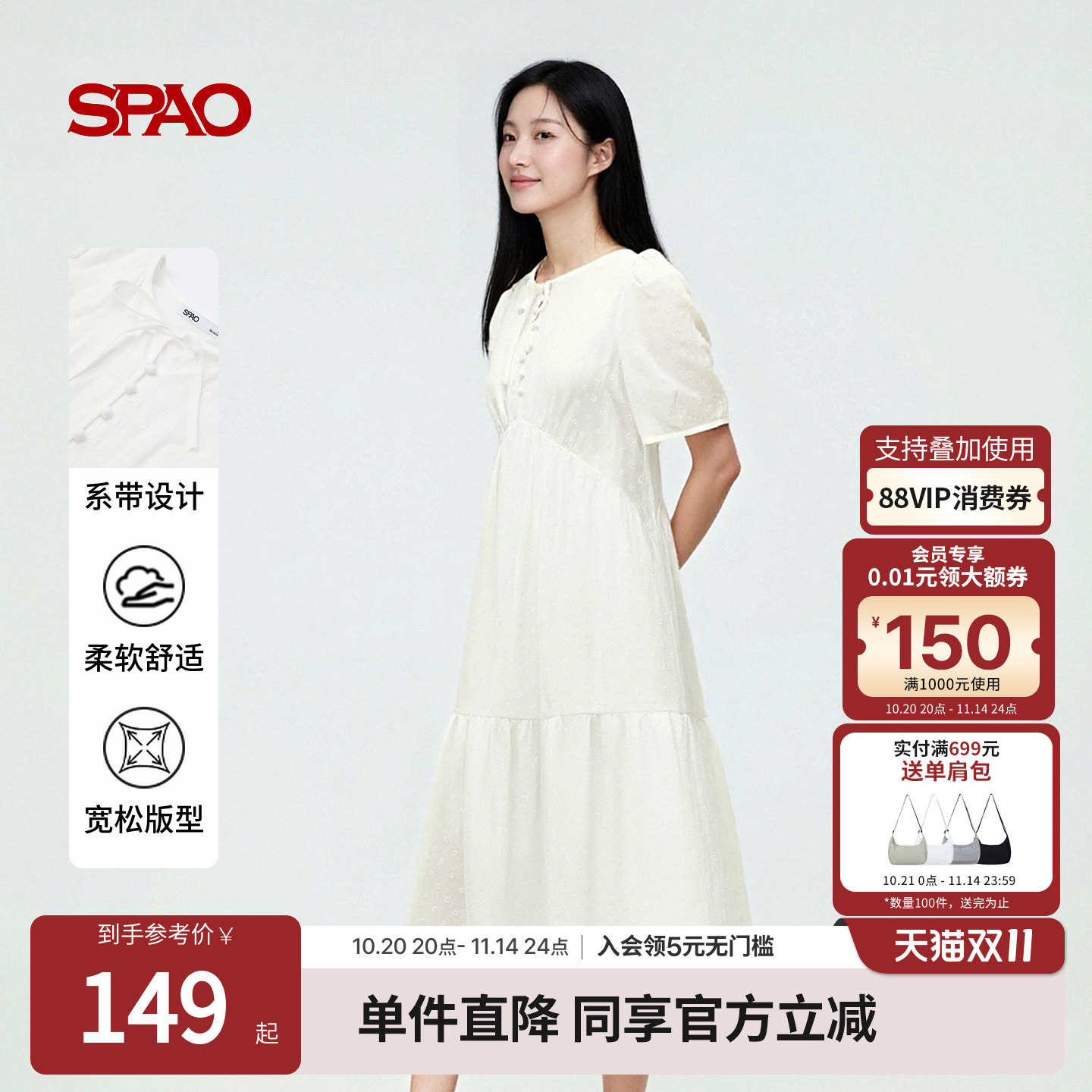 SPAO韩国同款2025年夏新品连衣裙简约BubbleGirl泡泡女孩清新时尚