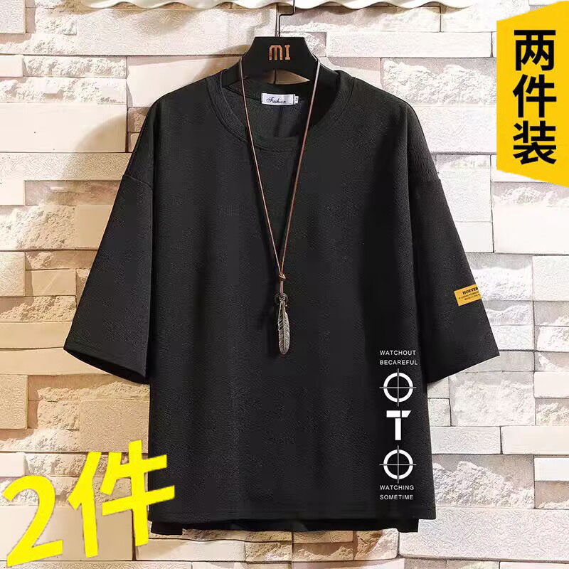 冰丝短袖t恤男款七分袖夏季薄款男装加肥大码上衣宽松ins潮流衣服