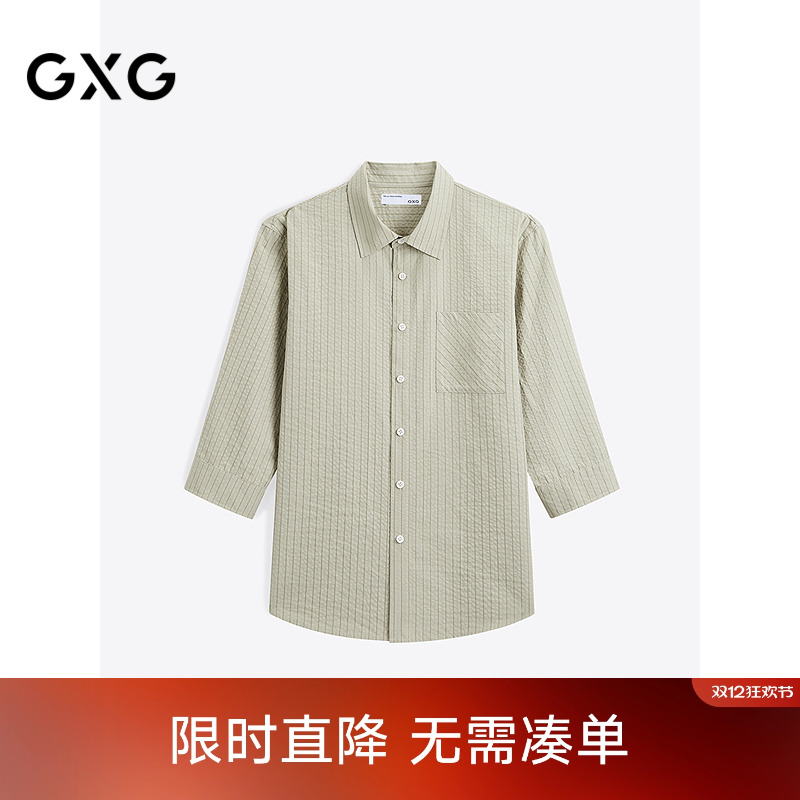 GXG男装 浅绿色条纹七分袖衬衫 24年夏季品G24X232031