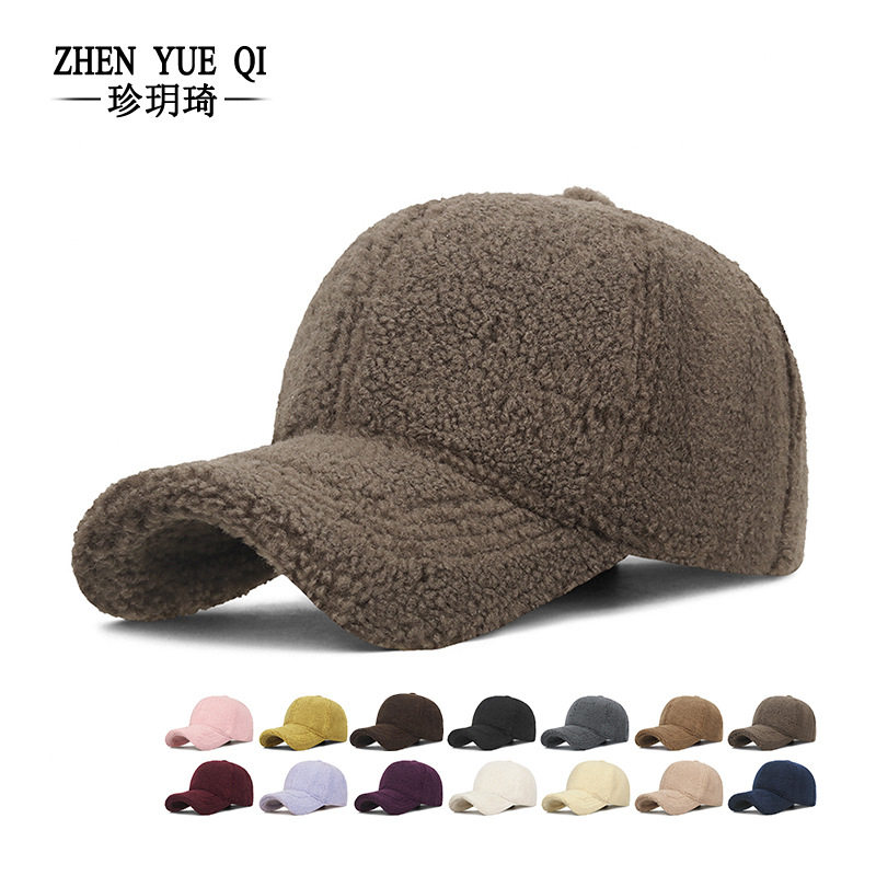 秋冬季羊羔毛加绒加厚纯色光板棒球帽户外简约硬顶保暖防寒鸭舌帽