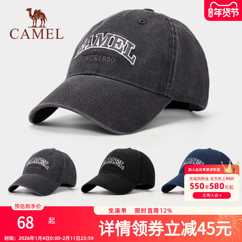 骆驼棒球帽运动帽2025年新款显脸小纯色字母牛仔布网球帽鸭舌帽子