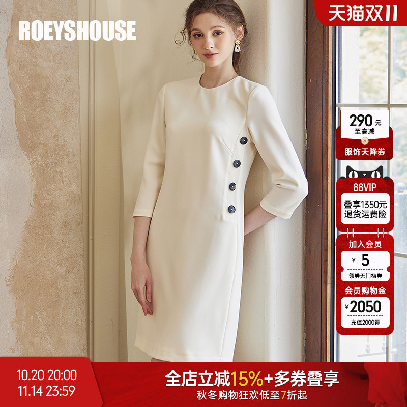 罗衣日本进口面料连衣裙女2025秋季新款知性OL米白中长裙子09279