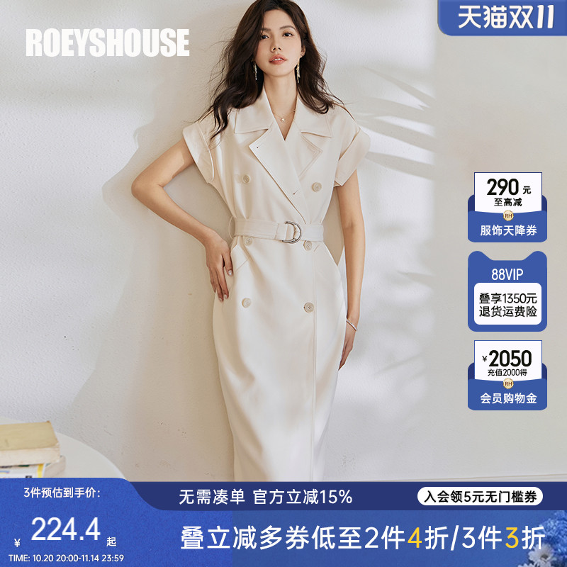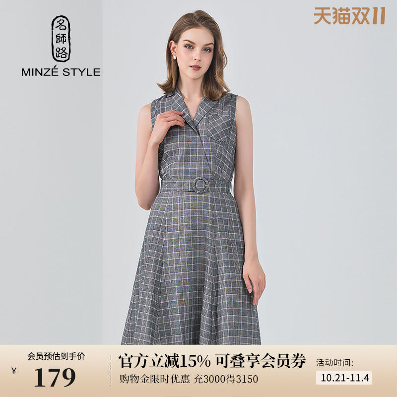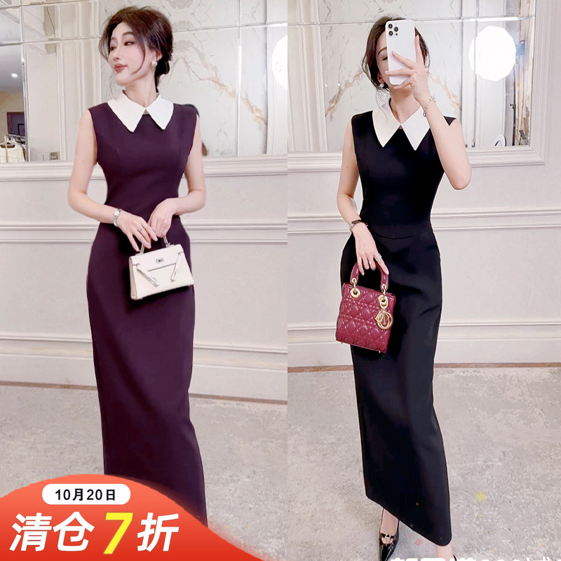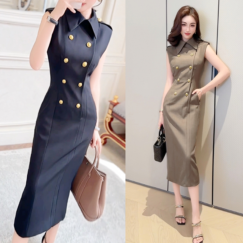 飞姐定制气质双排扣无袖连衣裙2025早秋新款翻领OL通勤中长裙