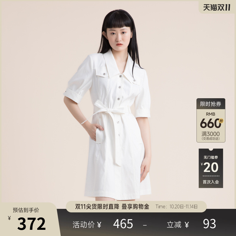 谜底短袖连衣裙夏季新款简洁通勤OL莱赛尔棉中长裙222ML0522-O