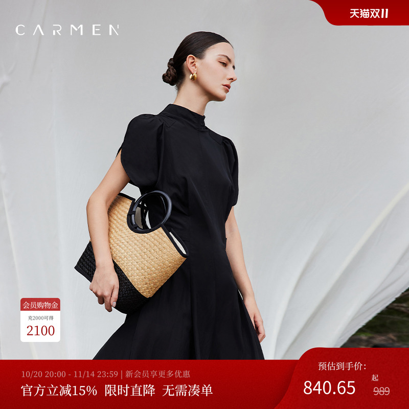 许妍同款~露思收腰连衣裙法式OL气质小性感露肩衬衫+黑色大摆长裙