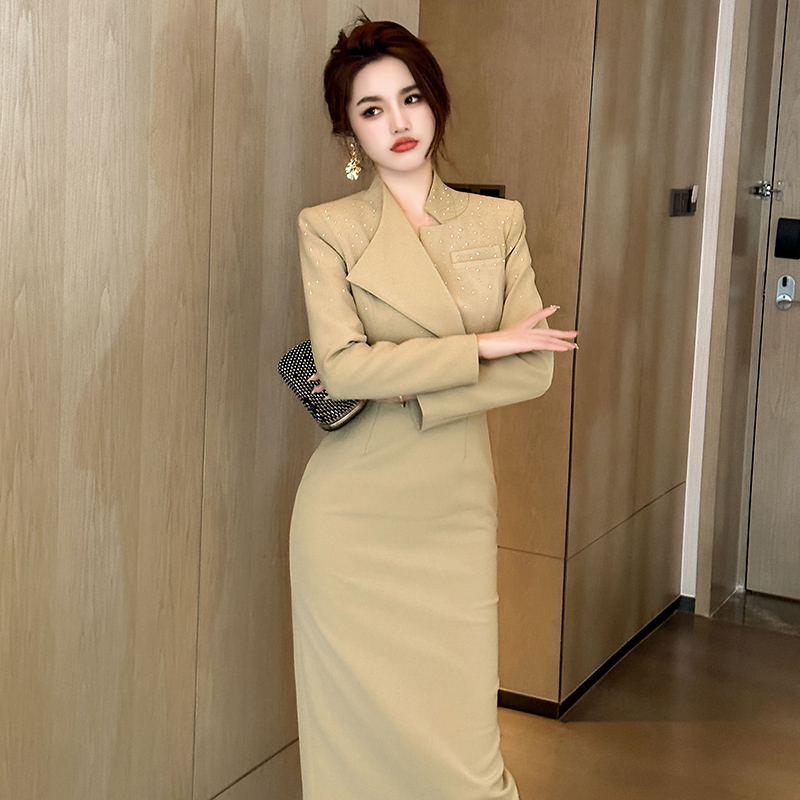 2025新款春季西装连衣裙女OL职业装时髦大气正式场合西服裙长裙