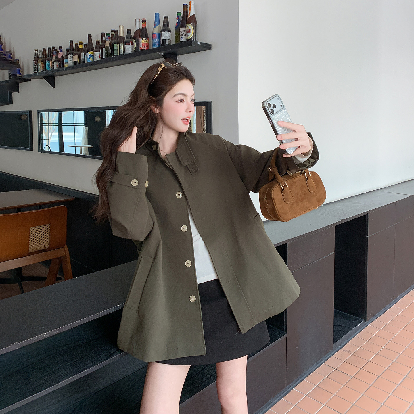 - 收腰休闲风衣外套女