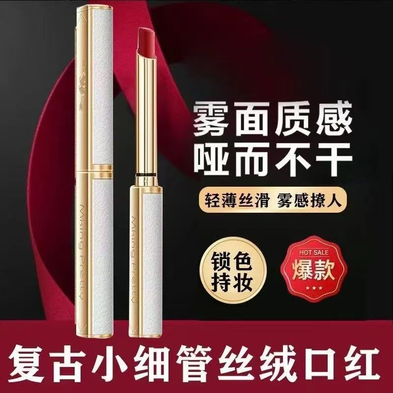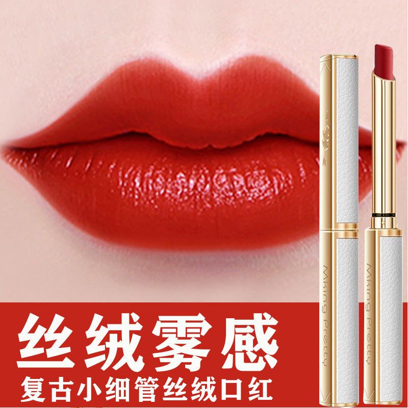 复古小细管丝绒口红小羊皮细长款小众品牌显白细哑光不掉色不沾杯