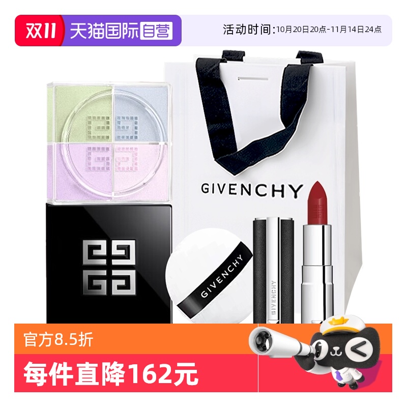 【自营】Givenchy/纪梵希四宫格散粉小羊皮口红黑管送女生礼物袋