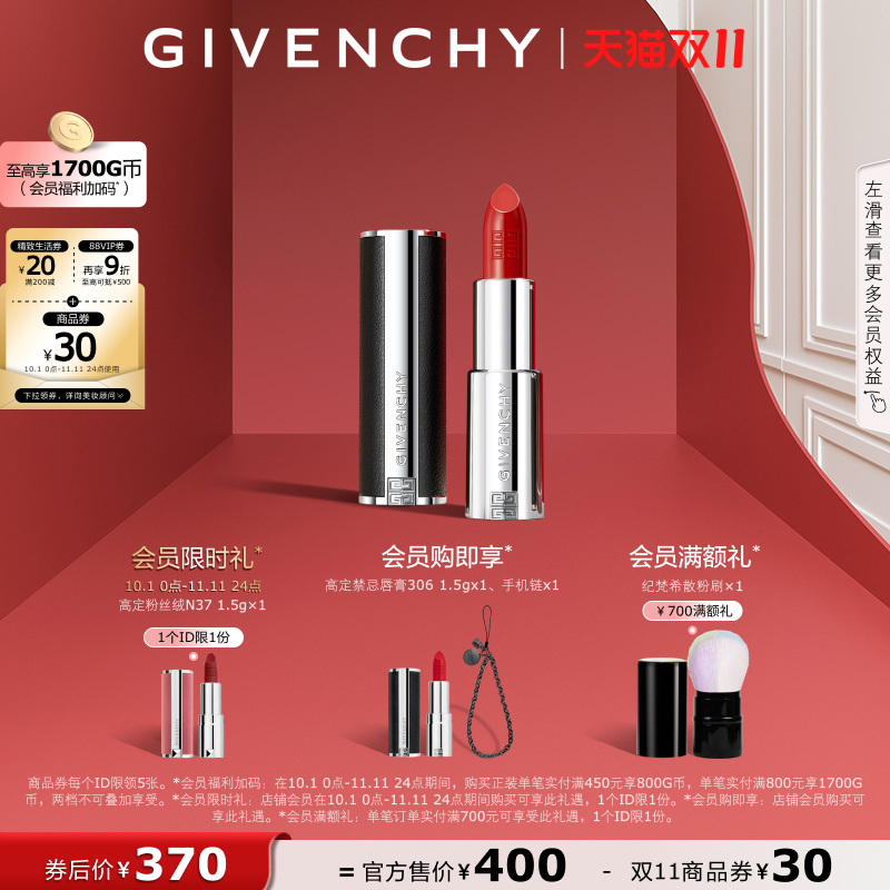 【双11立即抢购】 纪梵希高定禁忌缎光小羊皮口红缎光皮细管持色