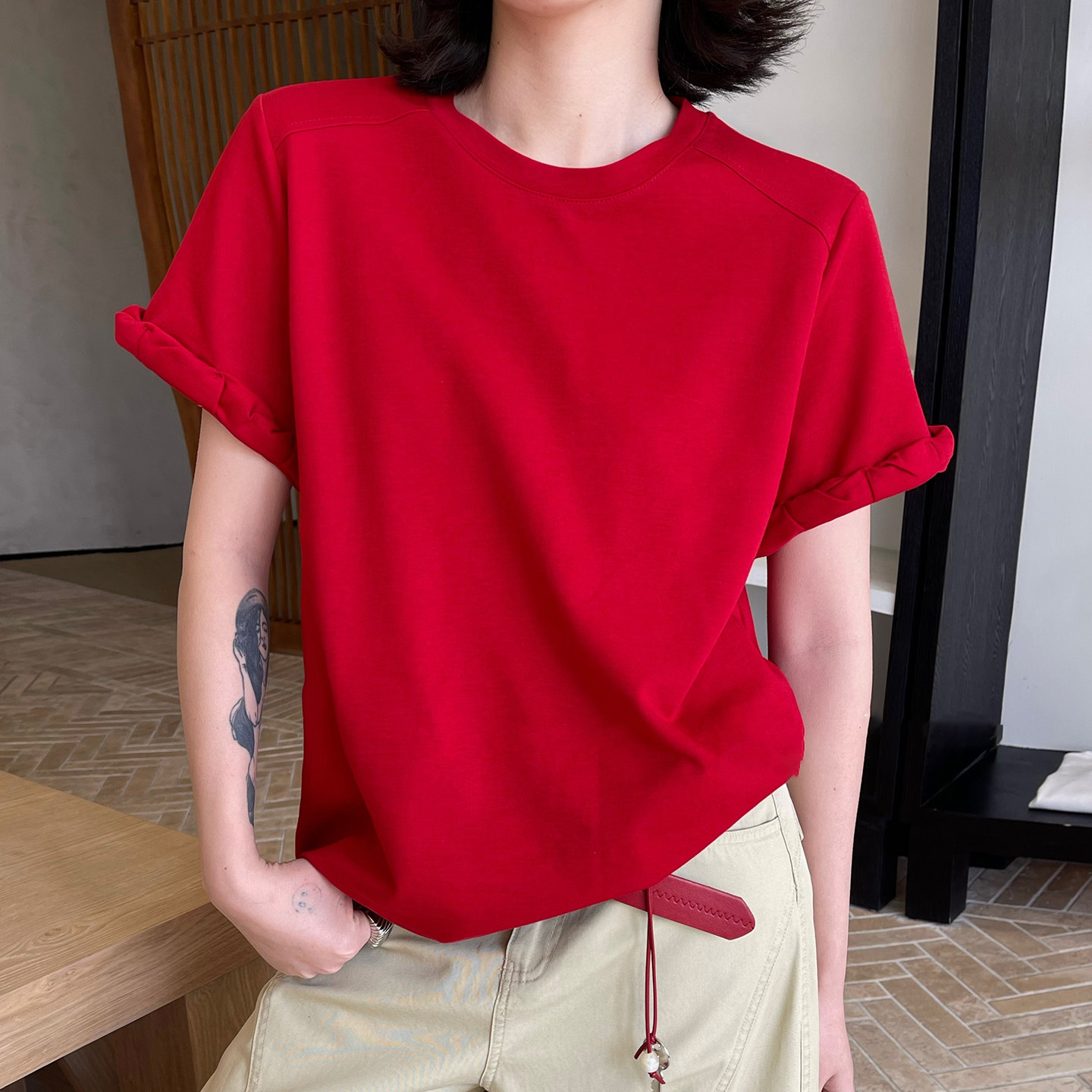 - 短袖t恤 女 韩版红色