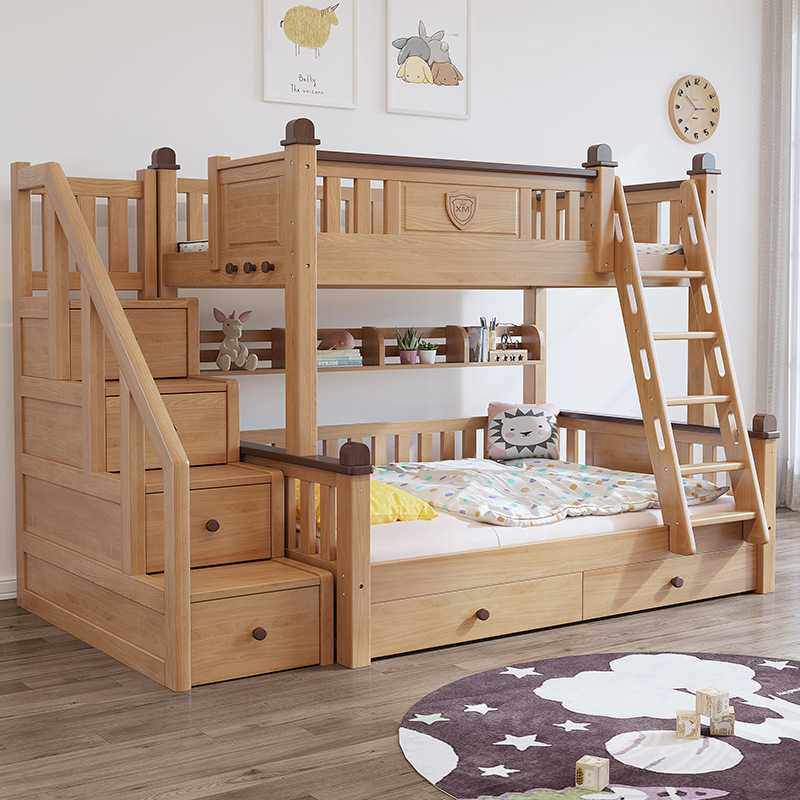 榉木高低床全实木儿童上下床双层床子母床多功能小户型两层上下铺