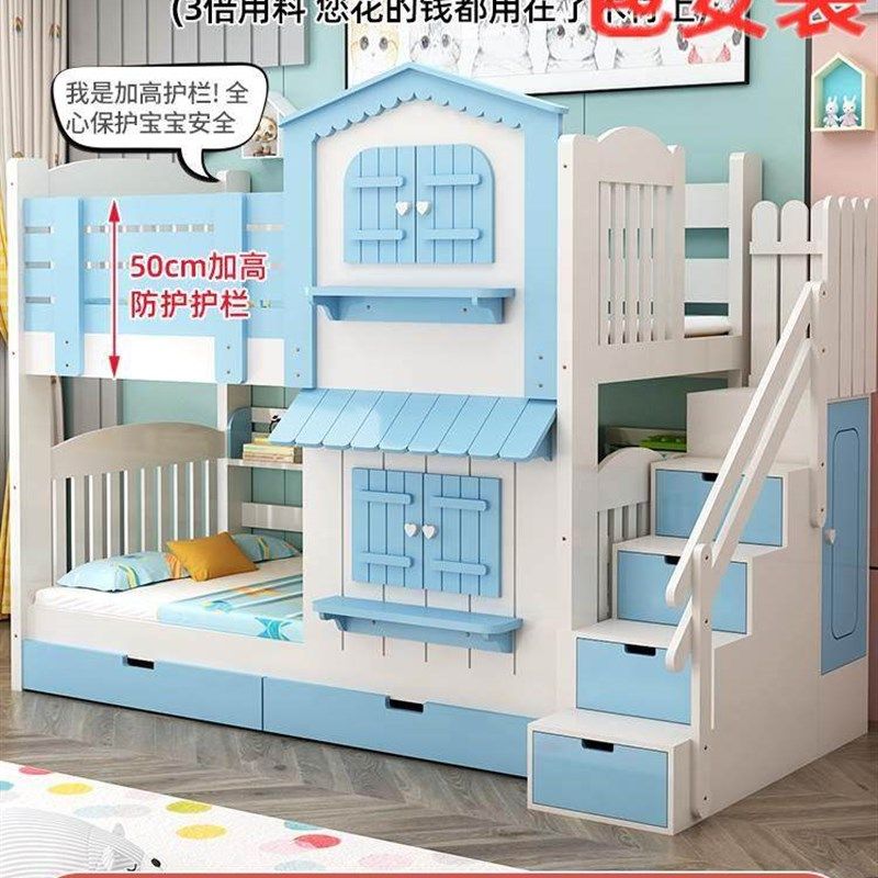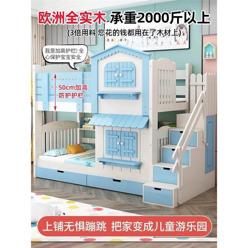 包安装多功能床全实木儿童上下床双层床高低床两层公主梦幻城堡滑