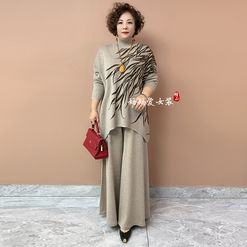 妈妈秋装针织两件套中老年羊毛衫上衣女洋气毛衣外套奶奶秋冬套装
