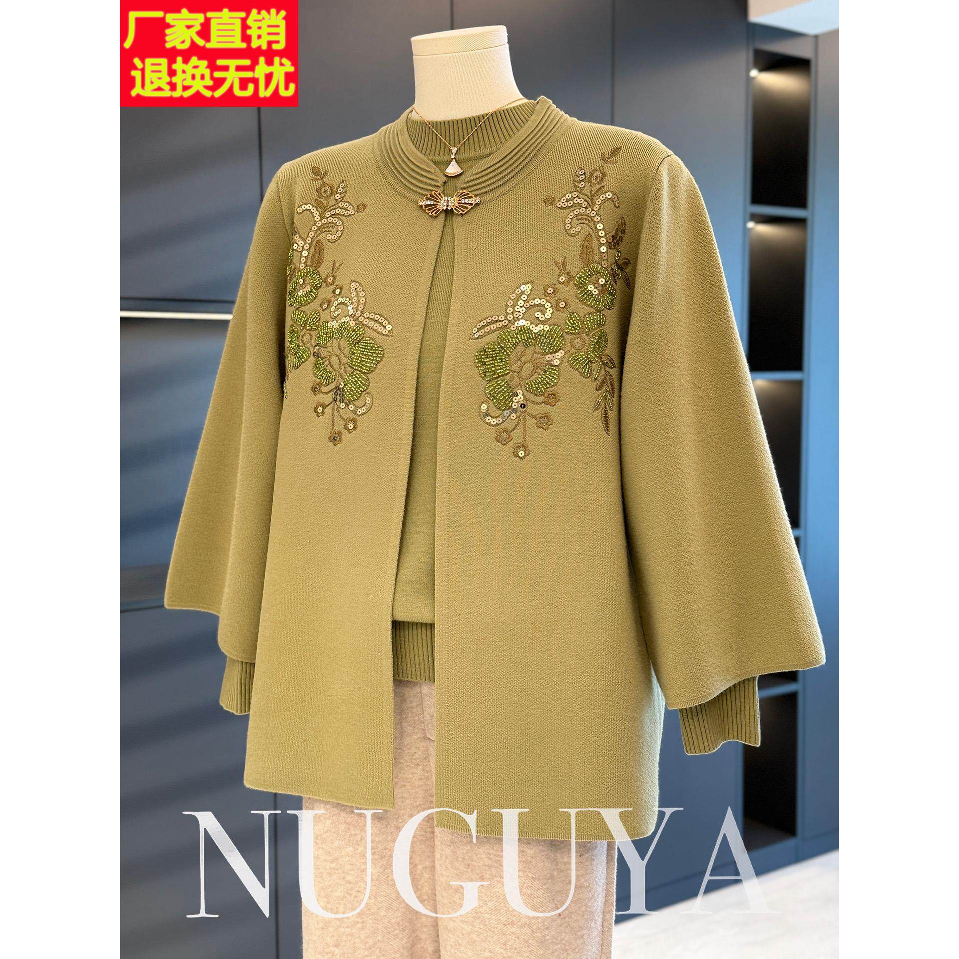 2025新中式妈妈秋装针织两件套中老年女秋冬国风毛衣时尚开衫外套
