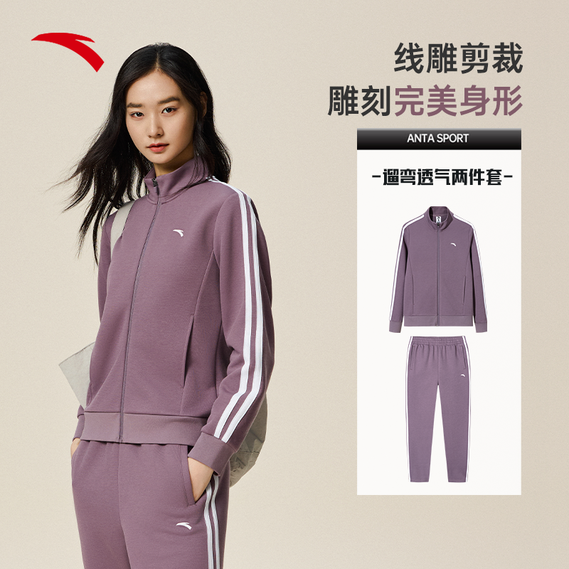 安踏运动套装女款冬长袖立领开衫外套针织长裤妈妈休闲遛弯两件套